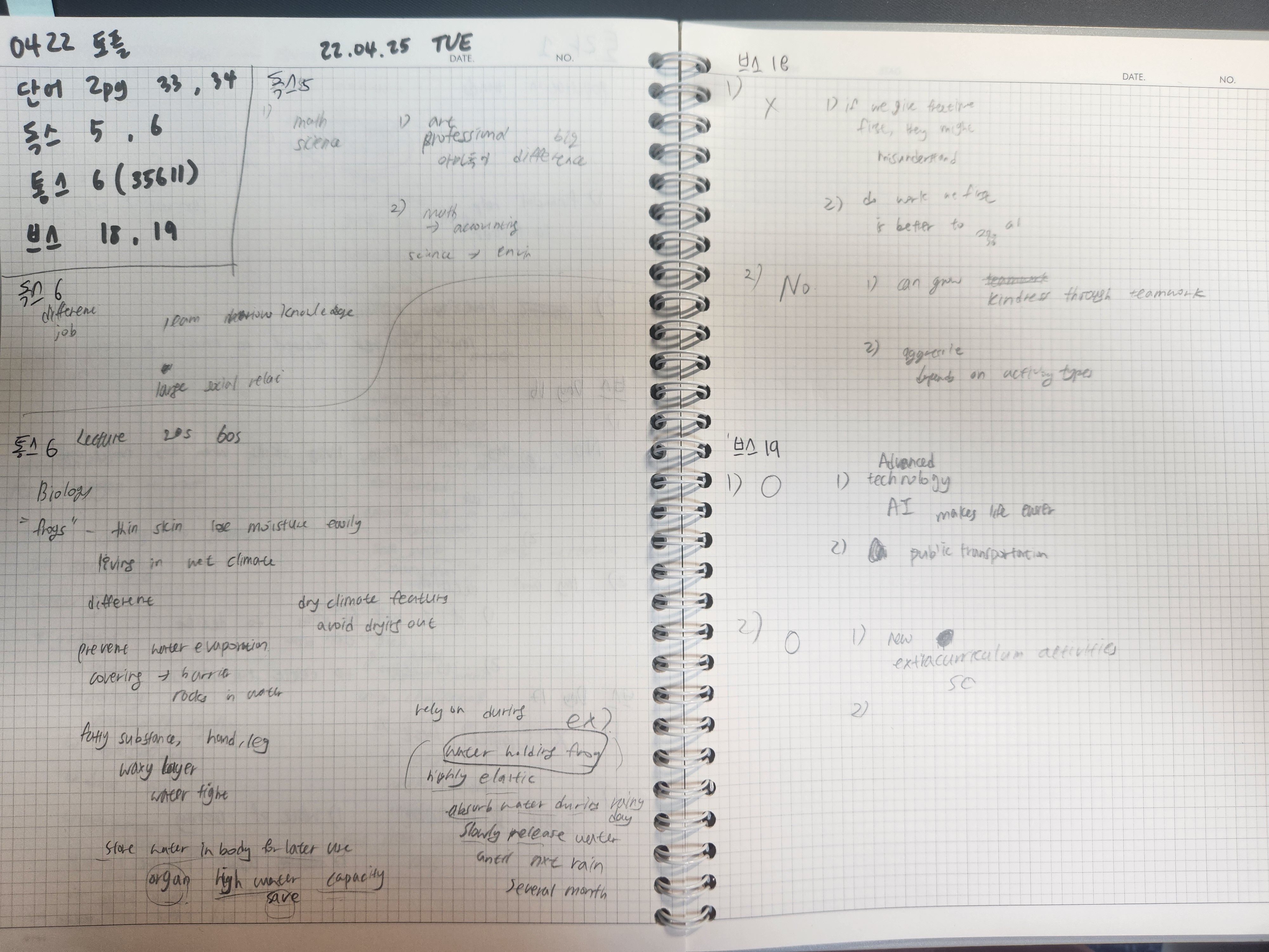 단어는 요즘 시간이 없어서 야매로 외우고 있는데 빨리 쓰는 걸로 복귀해야겠다. 어제껄 복습했더니 반절정도 기억이 났다.