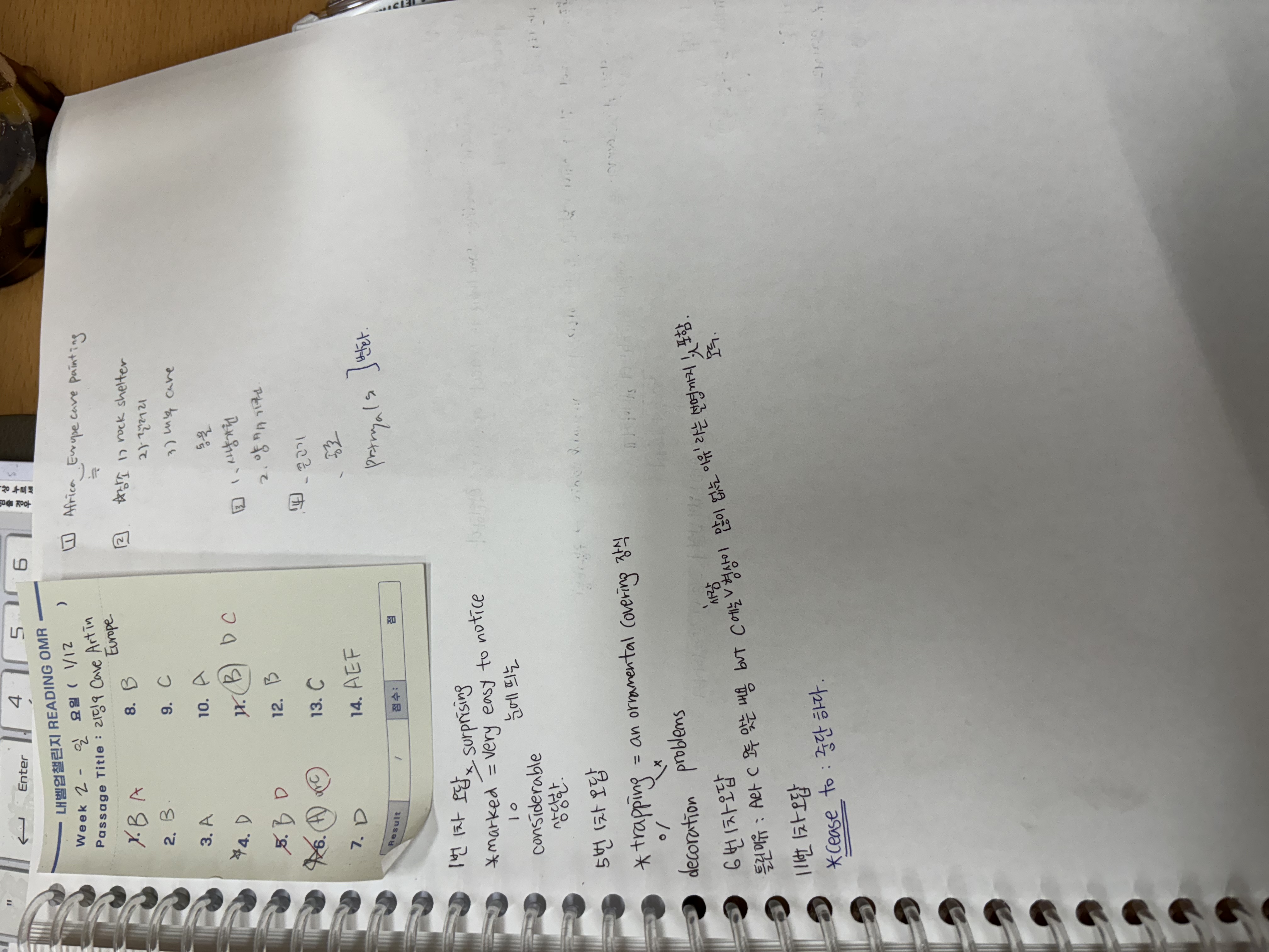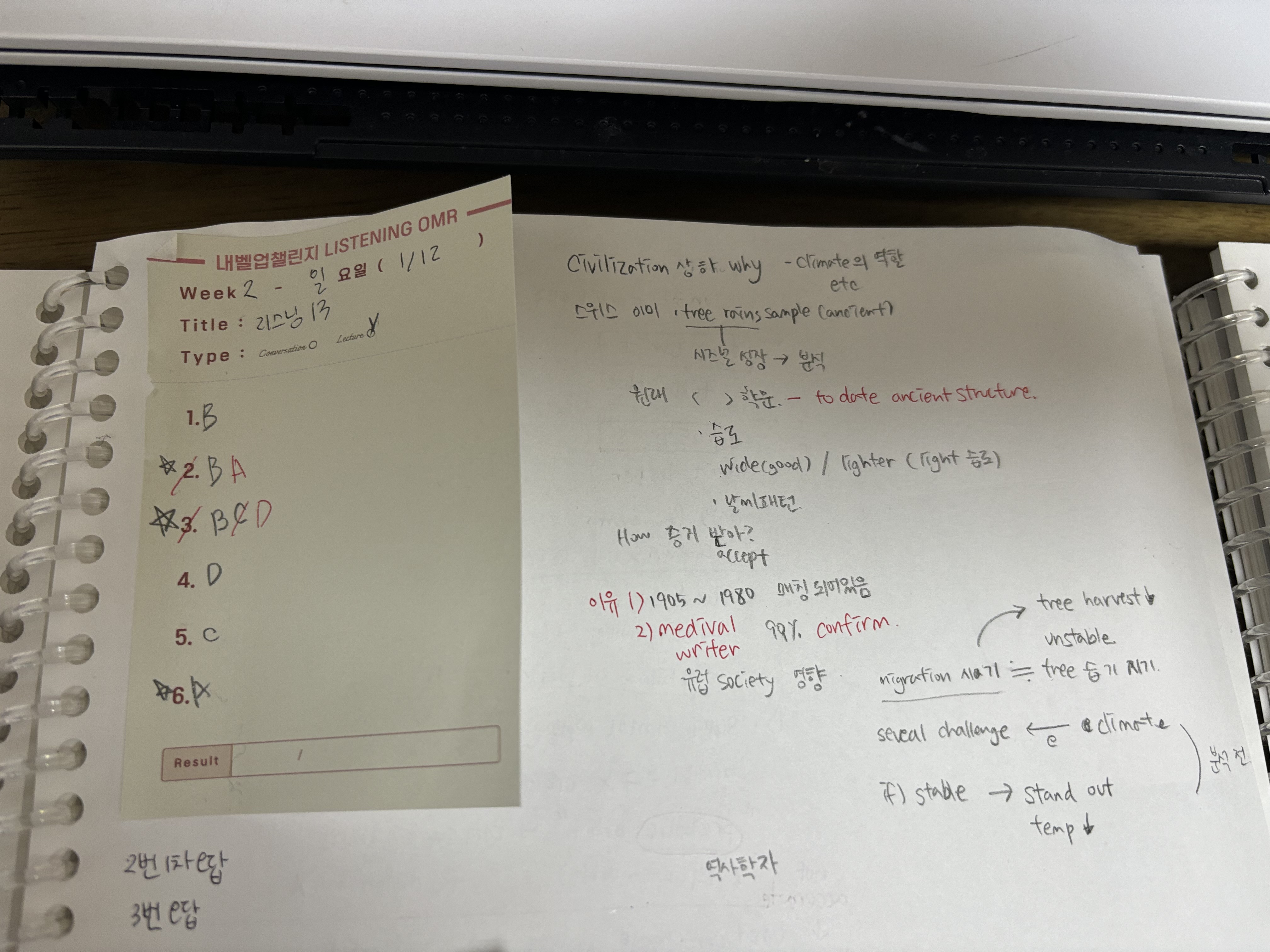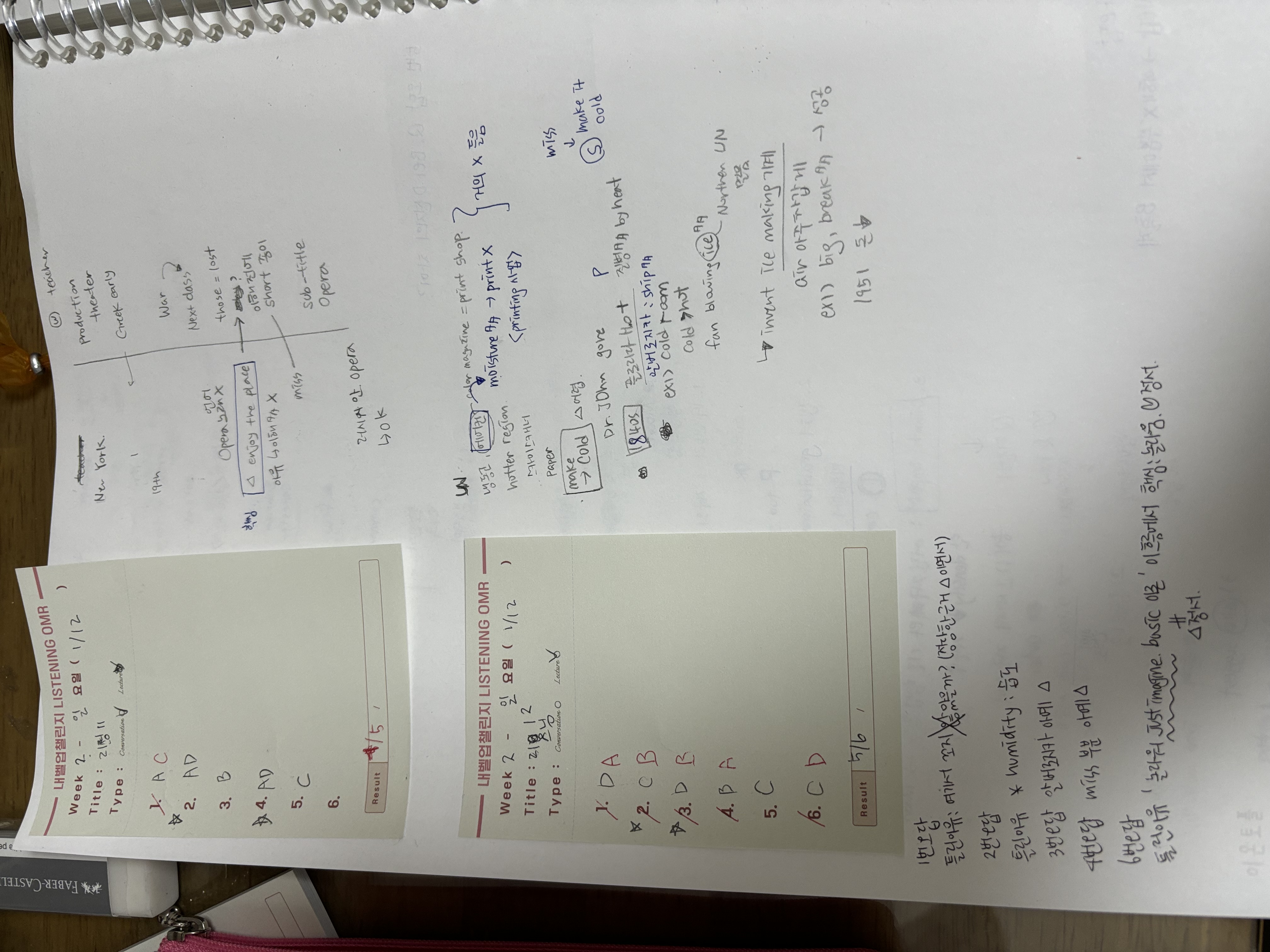 리스닝 12 멘탈이 터졌다 하나도 이해못하고 끝났다.. 잘하다가 어려운 지문 나오면 와사삭 무너지는 걸 보면 리스닝 듣는 스킬이 부족한듯 하다 노트는 꽤 잘했는데 못들은 부분에서 많은 문제가 출제되었다