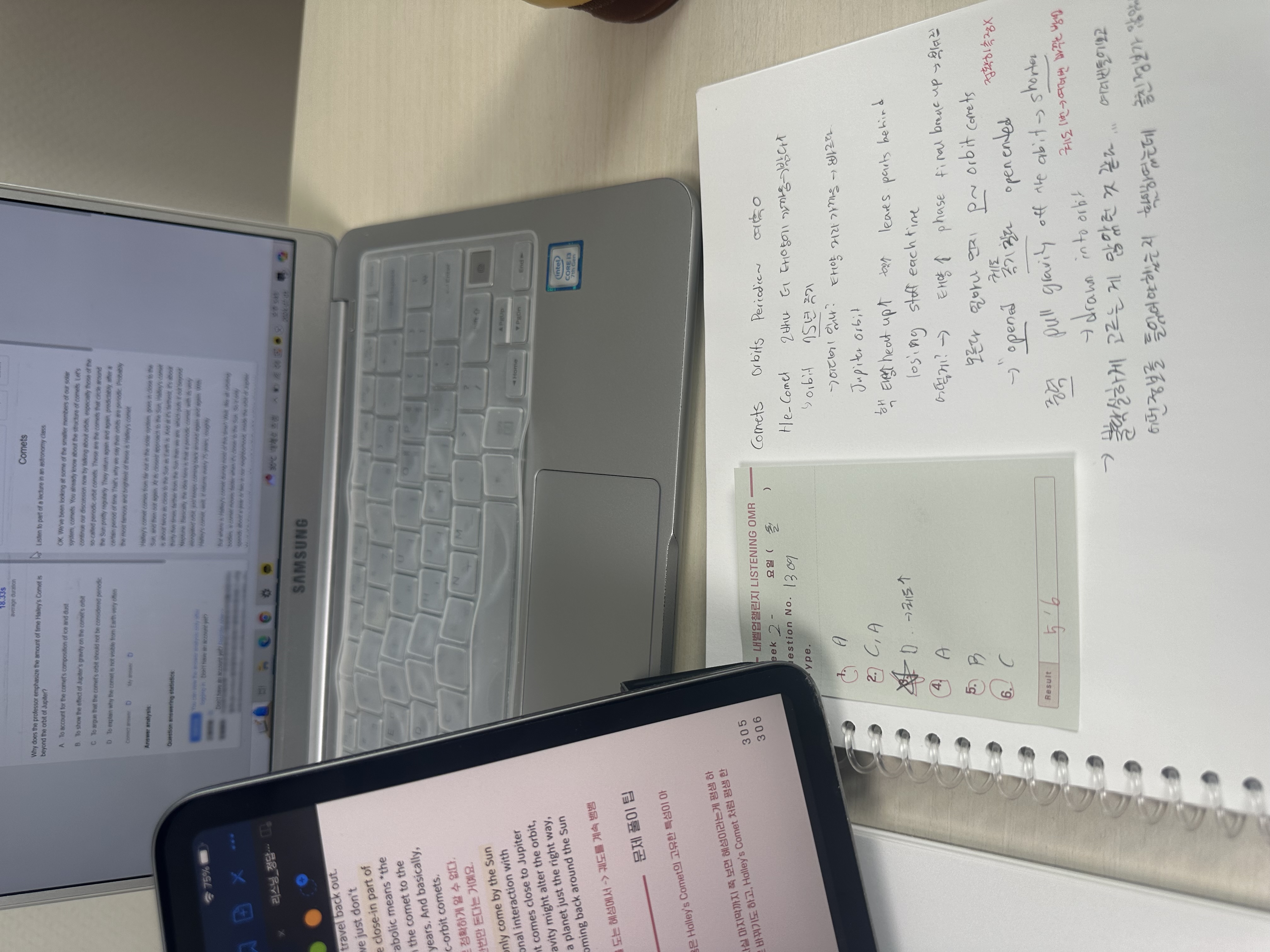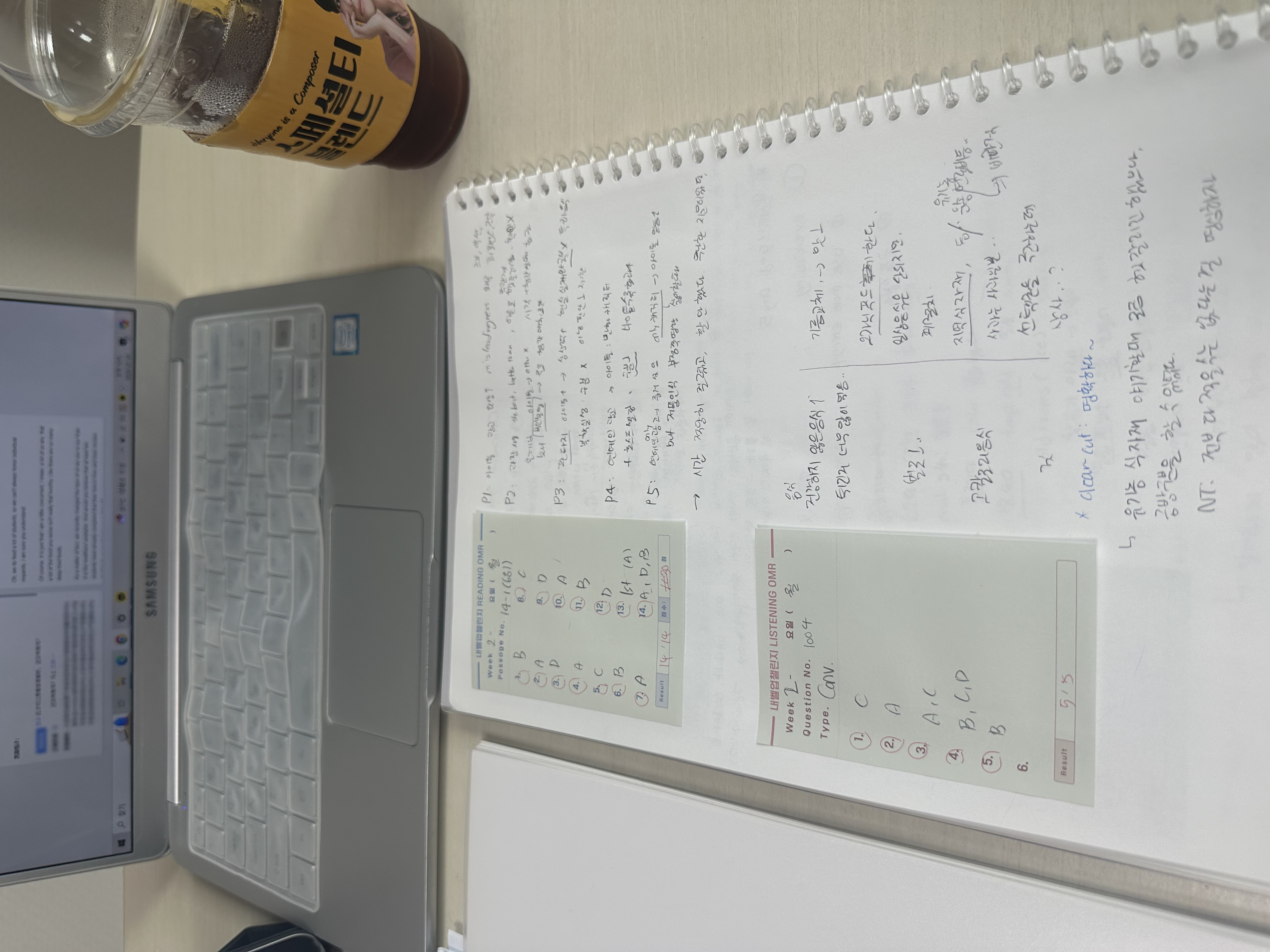 리딩과 리스닝이 오답이 적은데 특히 리스닝은 애매하다고 느끼는 경우가 많습니다. 리스닝과 스피킹을 좀 더 집중해서 내일은 공부시간을 더 많이 할애해야겠다 생각합니다.
