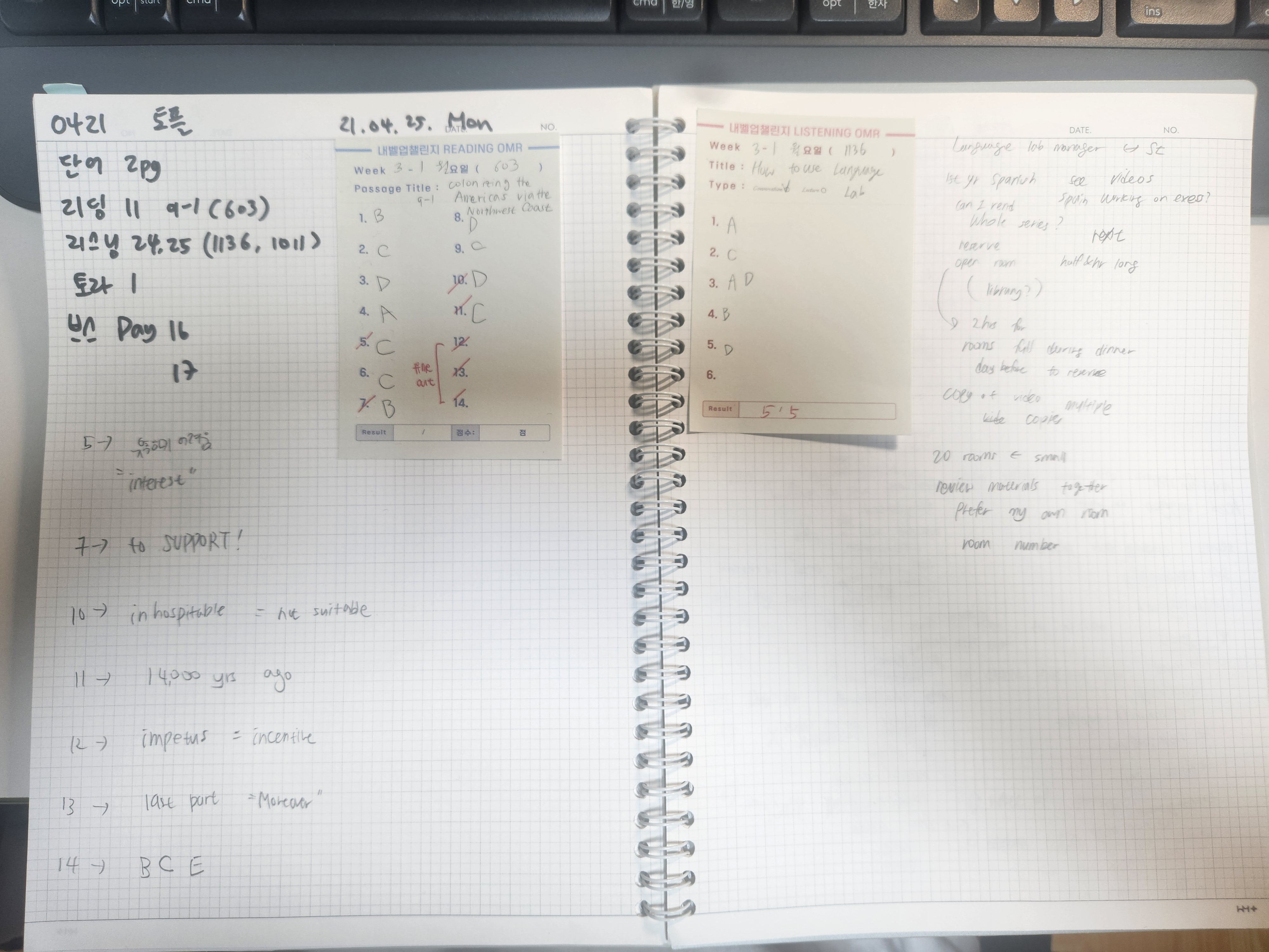 리스닝은 렉쳐에서 헷갈리는 부분이 있었고 토라는 처음 써보는데 내가 잡고자 하는 주제가 애매해서 애를 먹었다.