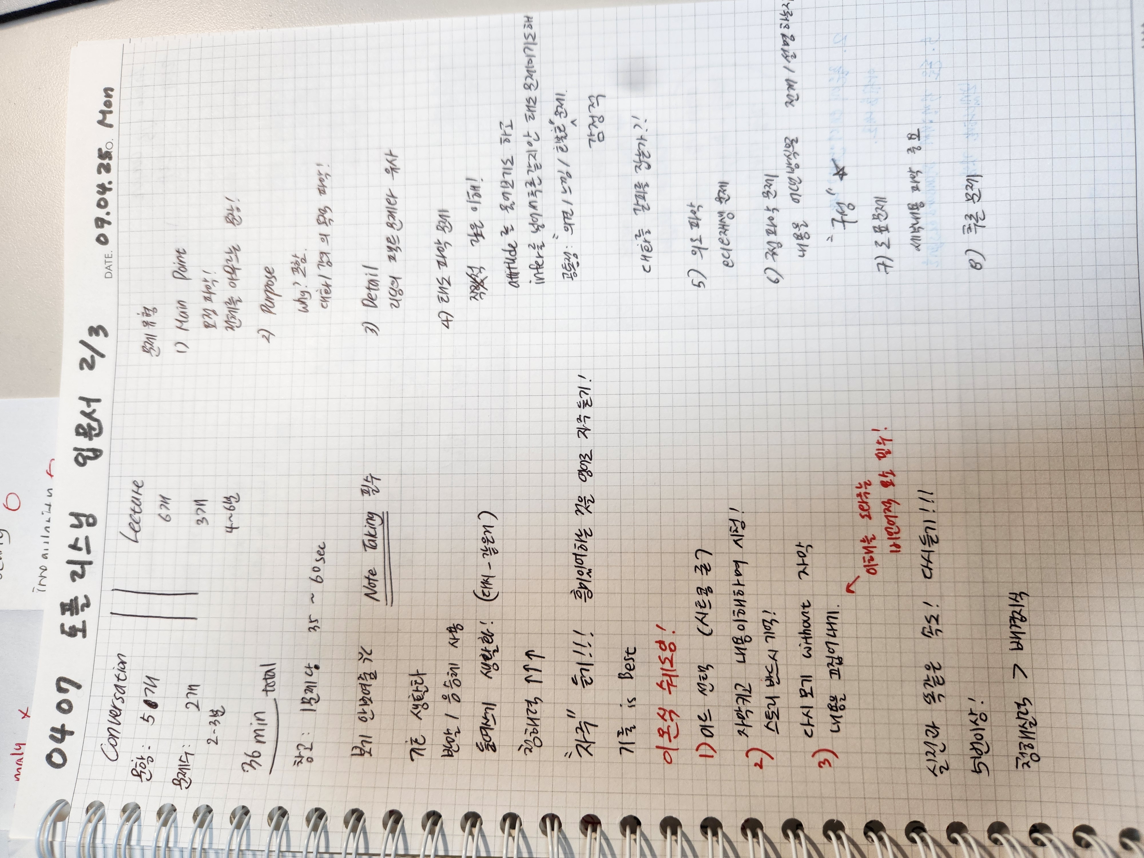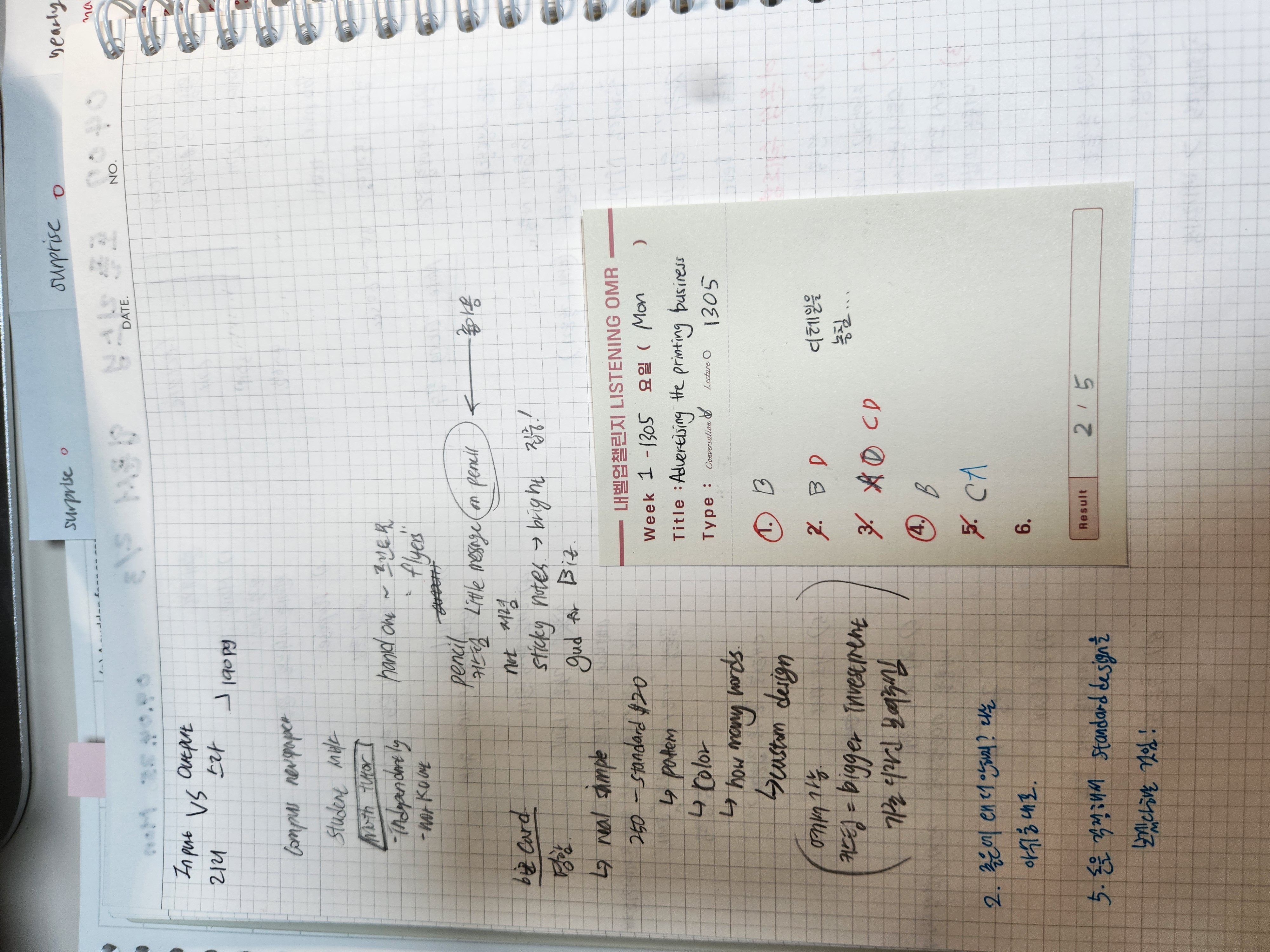 단어 2페이지, 입문서 190페이지까지 정독, 리스닝 1305, 1079, 1306 완료
