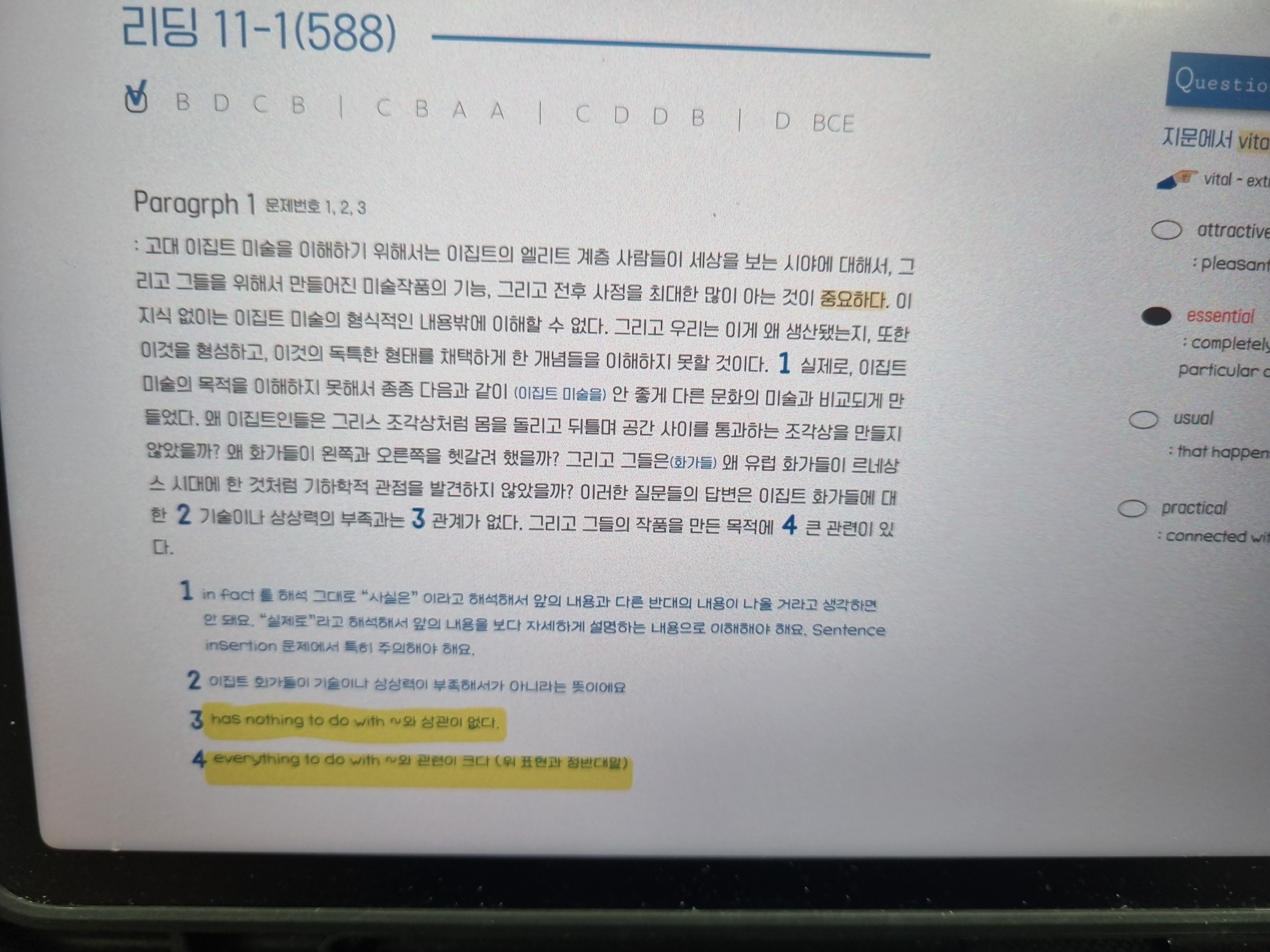 리딩 1지문에 23분이 걸렸는데 계속 연습해나가야 할듯 합니다.