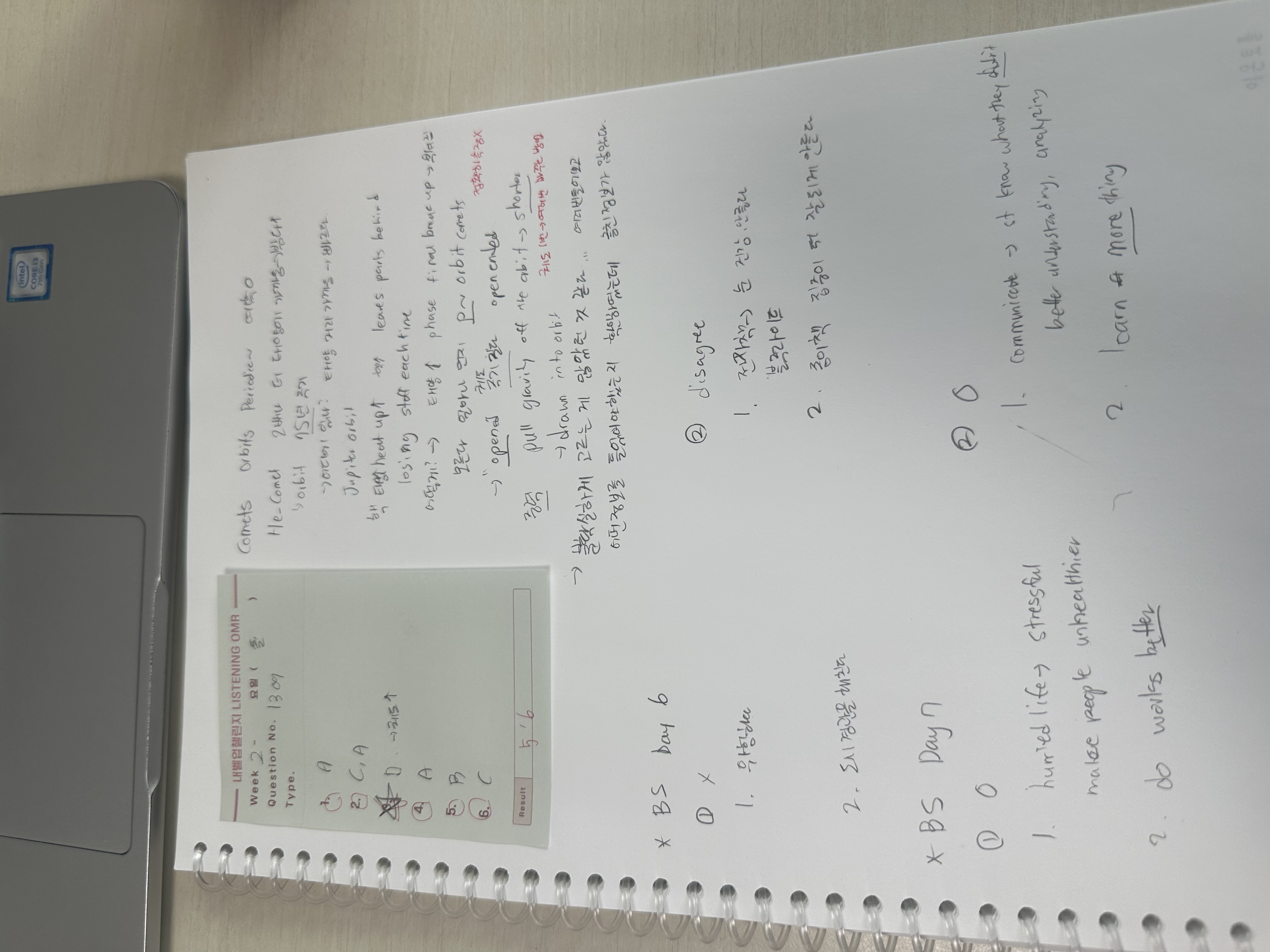 리딩과 리스닝이 오답이 적은데 특히 리스닝은 애매하다고 느끼는 경우가 많습니다. 리스닝과 스피킹을 좀 더 집중해서 내일은 공부시간을 더 많이 할애해야겠다 생각합니다.